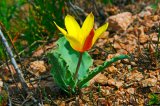 可疑郁金香 (Tulipa dubia) 生长在哈萨克斯坦, 天山山脉, Talas Alatau山脉, Ugam山脉和Aksu-Zhabagly自然保护区。