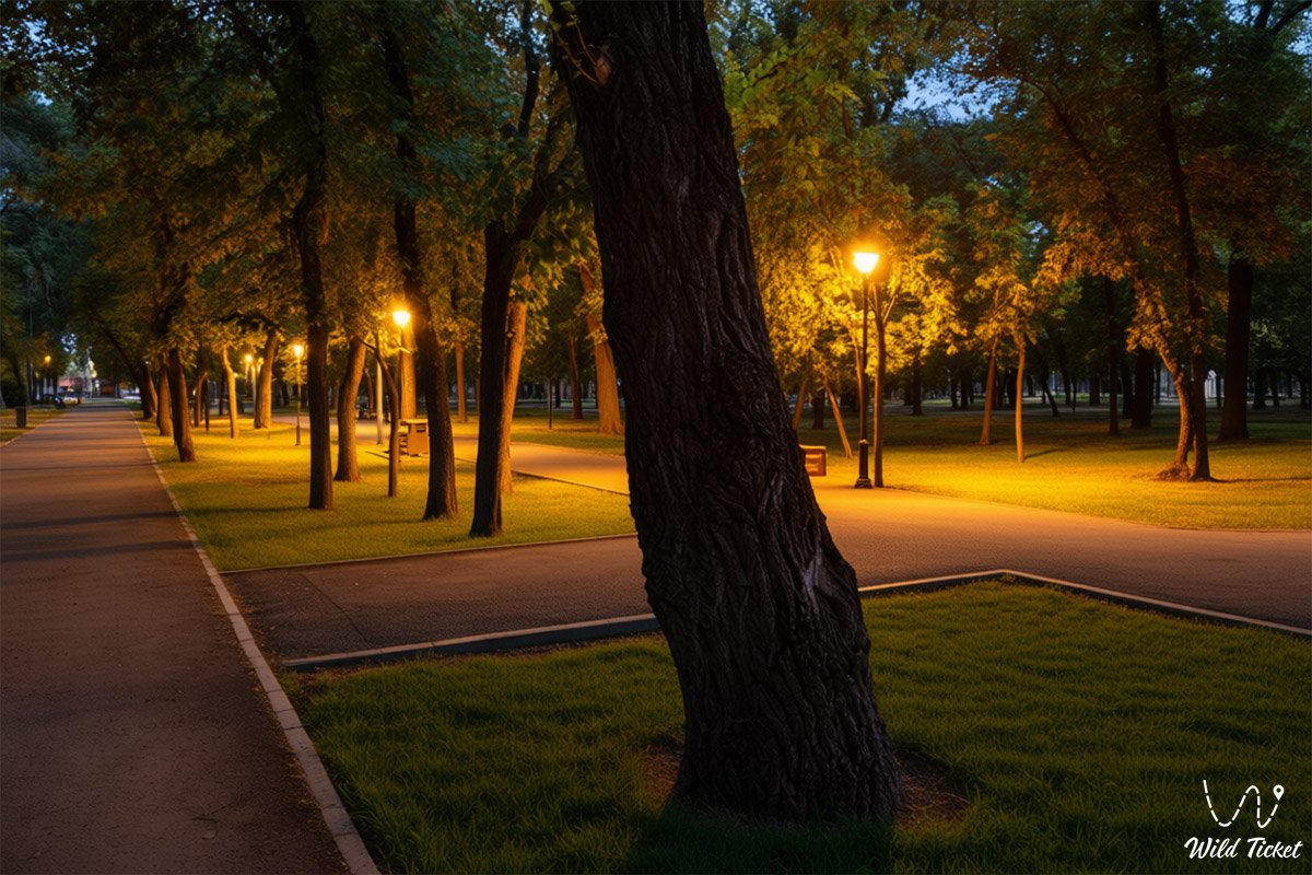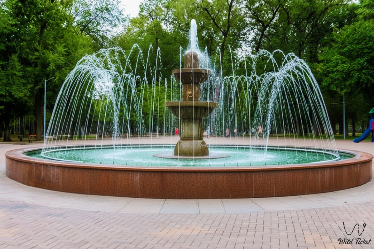 公园的领土是景观 - 杨树, 枫树和冷杉树生长在这里, 在夏季, 整个空间被绿色植物包围。 小路通向安静的角落, 在那里你可以坐在长凳上, 读一本书, 或者只是享受沉默。