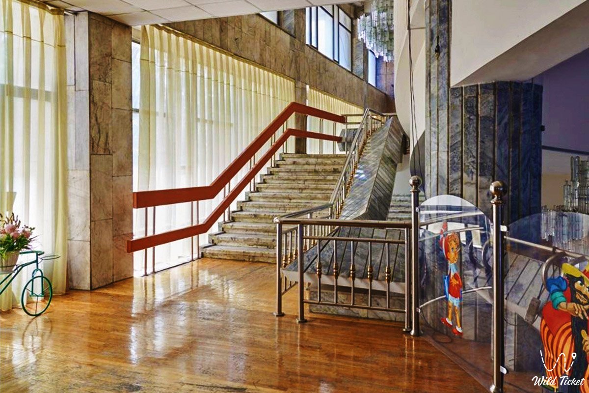 Natalia Sats是全世界儿童剧院的母亲。 她创立了世界上第一个莫斯科儿童剧院 (现在是着名的RAMT), 她的阿拉木图剧院成为这些想法的直接继承者。 它建于1981年, 就像一座童话般的宫殿--有充满活力的彩色玻璃窗, 壁画和独特的建筑, 让孩子们立即沉浸在一个神奇的世界里。