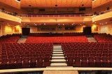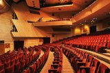 剧院的外立面是一条繁忙的街道, 它宽阔的台阶似乎邀请观众进入一个艺术的世界。 晚上, 大楼灯火通明, 礼堂窗户焕发出温暖的金光, 营造出节日气氛。