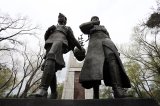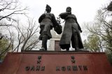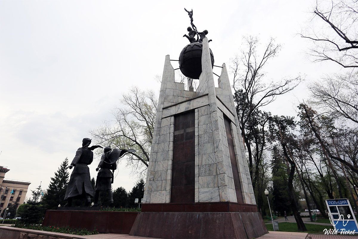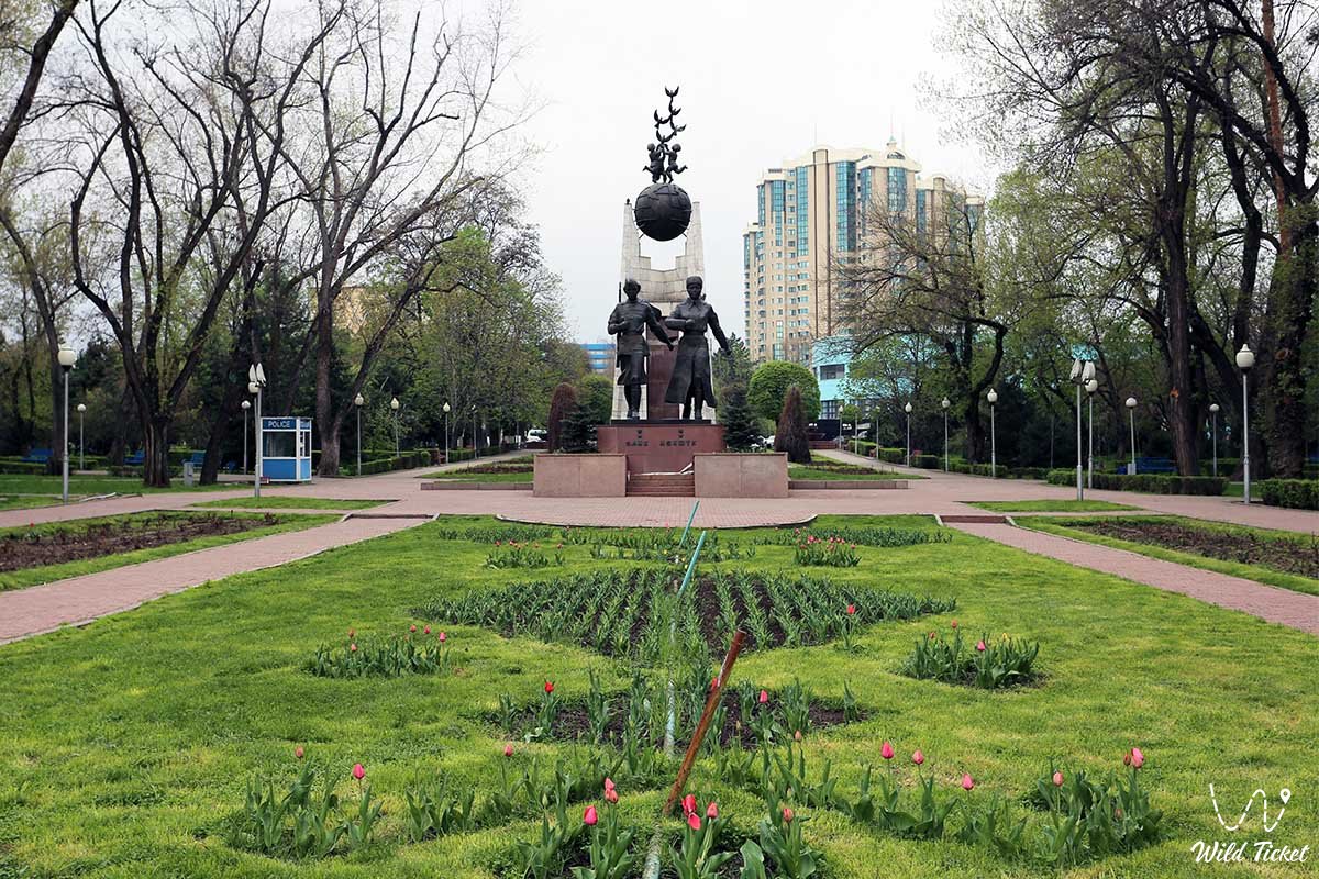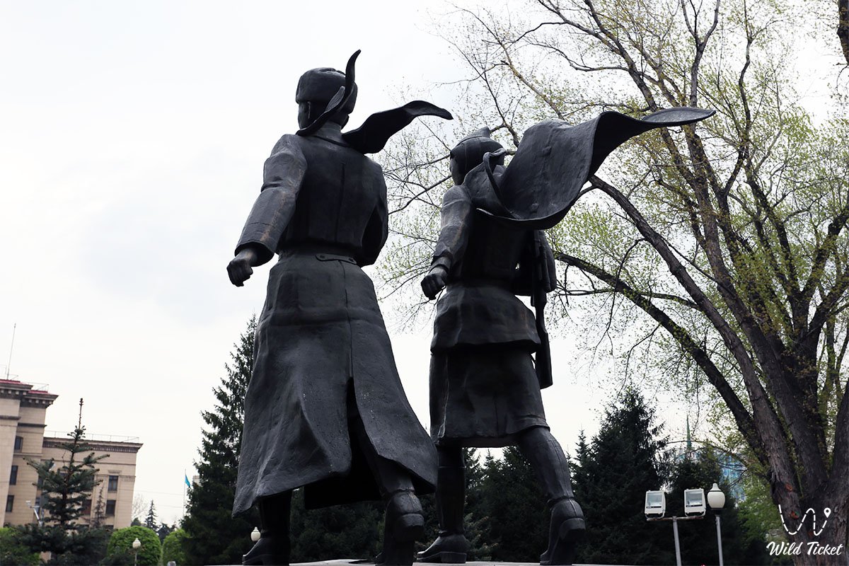 Manshuk Mametova和Alia Moldagulova纪念碑, 位于Abylai Khan大道和Panfilov街之间的Tole Bi街的阿拉木图市中心, 位于哈萨克斯坦共和国Almaly区阿斯塔纳广场 (旧广场)前的一个美丽的公园内。