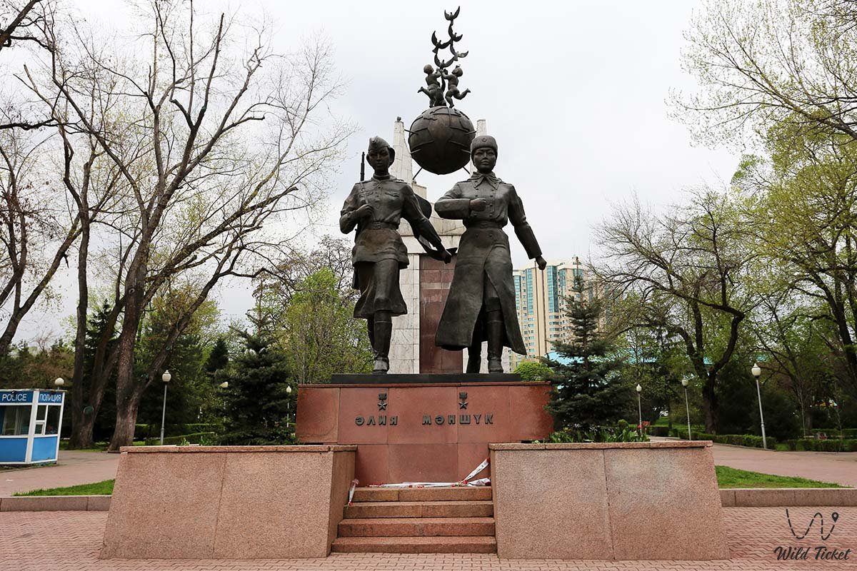 Manshuk Mametova和Alia Moldagulova的纪念碑是阿拉木图最感人和最具象征意义的纪念碑之一, 致力于伟大卫国战争的两位女主角。 它位于阿斯塔纳广场前公园的城市风景如画的地区之一, 周围环绕着绿树和修剪整齐的小巷, 沉默似乎保留了那些为生命与和平而奋斗并为此献出生命的人的记忆。