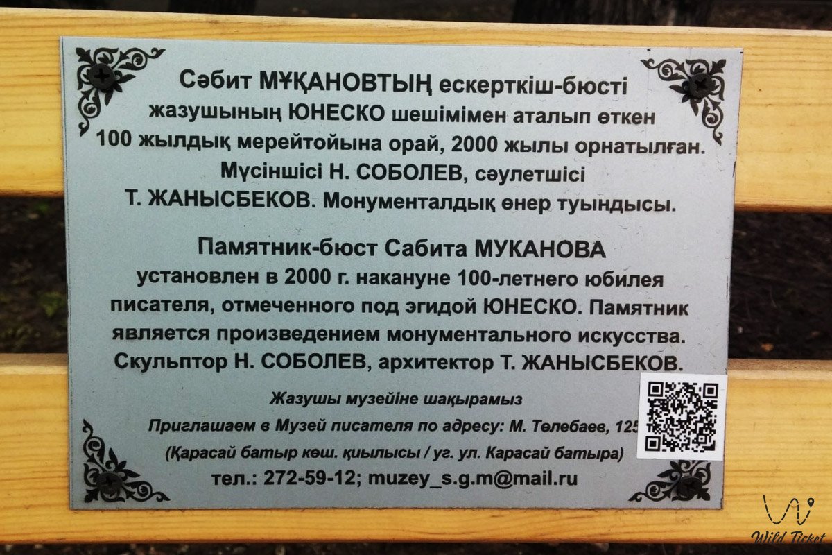 阿拉木图的Sabit Mukanov半身像纪念碑致力于20世纪哈萨克文学的最大代表之一, 作家, 公众人物和民间文化研究员。 这座纪念碑不仅成为城市环境的一个元素, 而且是对一个人的尊重的标志, 他的作品在塑造哈萨克斯坦的民族认同和文学传统方面发挥了重要作用。