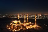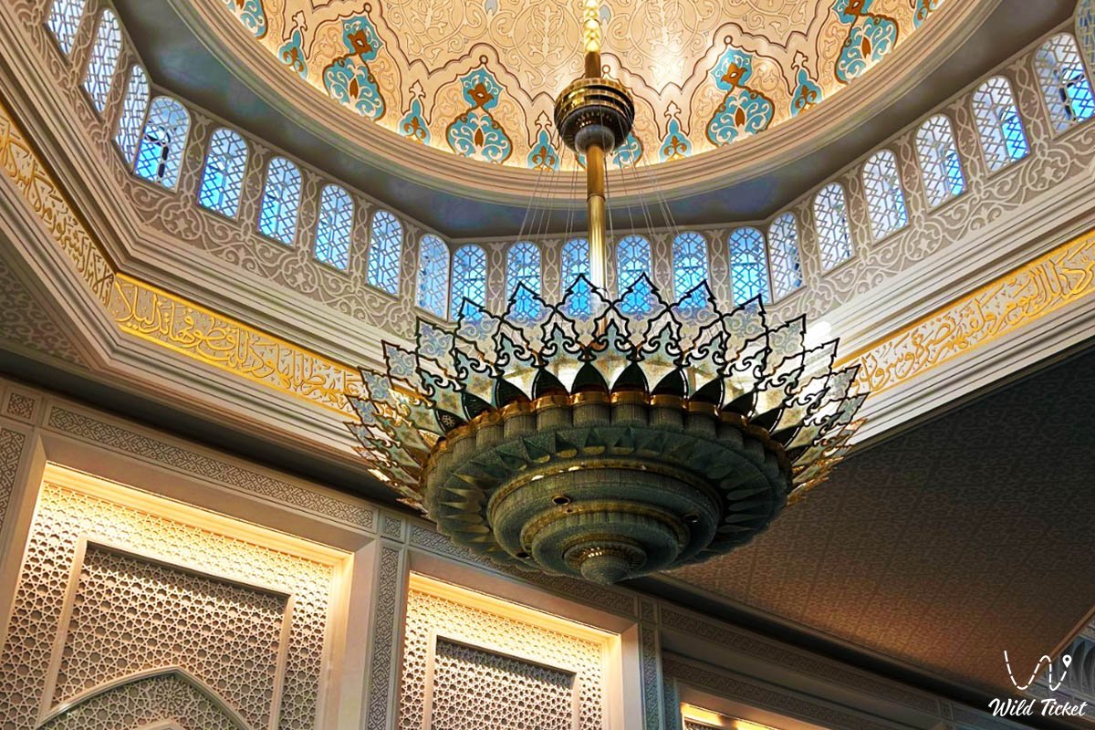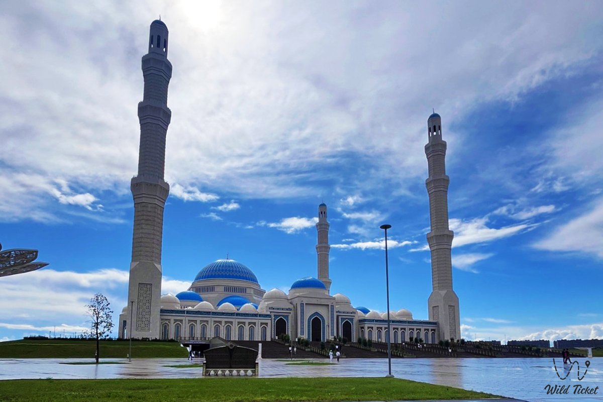 该建筑群占地10公顷,四周环绕着带喷泉的风景秀丽的公园。清真寺与伊希姆河左岸的现代景观和谐融合,将古老的伊斯兰传统与尖端的工程技术相结合。它是吸引朝圣者和游客的磁石,人们来到这里欣赏独特的白色大理石饰面、巨大的吊灯,并感受深沉宁静的氛围。