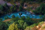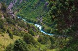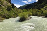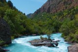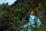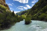 Aksu河是古代天山的一条沸腾的动脉, 它的水晶水穿过原始自然的中心。 这座山的美丽起源于海拔3500多米的塔拉斯阿拉托冰川, 数百万年来, 它在岩石上雕刻出了雄伟的Aksu峡谷, 深达500米--中亚最深的峡谷之一。 所有这些自然美景都位于Aksu-Zhabagly自然保护区。 河里的水清澈得令人眼花缭乱, 带有绿松石色, 这在7-8月冰川正在积极融化时尤为明显。 水也有一个惊人的属性 - 在一天的不同时间, 它的颜色从早上的乳白色绿松石变成中午的深蓝宝石, 到了晚上, 当太阳滑过岩石时, 它首先闪烁着液态金, 然 即使在夏季的高度温度不超过+10°C-这个冰川的水分是如此寒冷。 河床上散布着形状奇特的巨石, 在这些巨石之间, 水沸腾, 形成了微型漩涡和瀑布。 我们不建议在河里游泳, 因为河里的水很冷, 水流速度非常快。