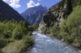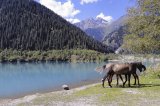 1973年,伊塞克湖发生泥石流,导致该湖被毁,部分消失,整个湖上的基础设施被水流破坏。现在湖水正在逐渐恢复,但非常缓慢。事故前湖长1850 m,宽500 m,深50-79 m,现长755 m,最宽处325 m,岸长2.4 km。伊塞克河自西南向北流入湖中。灾难过后,湖水减少了近三倍,但保留了昔日的美丽和原始。