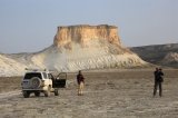 Переезд: урочище Жармыш – мазар Маната-ата - перевал Маната – Западный чинк Устюрта (85 км). Остановка у мазара Маната-ата, фотографирование чудесной, разноцветной горы слева от дороги. Подъем на чинк Устюрта, остановка на краю чинка, фотографирование панорамы сора Тузбаир с высоты чинка.