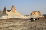 Посещение кордона Устюртского заповедника, переезд к юго-восточной оконечности впадины, установка лагеря. Прямо перед нами открываются виды на уникальные и фантастические острова Три Брата, как гигантские грибы взметнувшиеся из солончака и раскинувшиеся в южной части сора. Ужин, ночлег в палатках.