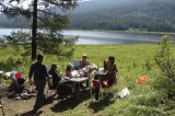 Завтрак. Озеро Язевое это одно из увлекательных частей нашего пути по Казахстанскому Алтаю. Озеро Язевое находится в живописной долине, расположенной на высоте 1656 метров над уровнем моря. Длина озера, с севера на юг 3 километра, ширина 600 метров. Озеро достаточно теплое в летний период, в нем можно купаться.