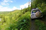 Переезд: перевал Бурхат – река Каракоба – перевал Алатайский 1792 метра над уровнем моря (27 км). Остановка на перевале Алатайский, обозрение и фотографирование впечатляющей панорамы окрестных гор и алтайской тайги.