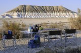 Дальнейший переезд: кордон Унере – впадина Карынжарык (19 км). После кордона Унере мы огибаем южную оконечность солончак Кендерлисор и остановимся на стоянку с восточной стороны впадины Карынжарык на краю Западного чинка Устюрта. Отсюда открывается великолепная панорама на впадину Карынжарык с пятью останцовыми горами. Прогулка в окрестностях, ужин, ночлег в палатках.