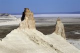 Переезд: мечеть Шопан ата – сор Тузбаир (70 км). После мечети Шопан ата мы минуем мазар Костам, который находится на возвышенности, дальнейший наш путь лежит вдоль северо-восточной кромки пустыни Бостанкум. Там, где пески Бостанкум граничат с песками Саускан мы поворачиваем на север и движемся вдоль газопровода «Средняя Азия - Центр». Прибытие на сор Тузбаир, здесь северная часть сора находится на западной границе Западного чинка Устюрта. Обед в тени скал.