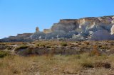 Акеспе-меловое урочище на полуострове Мангышлак. Урочище очень красивое, сложено древнейшими меловыми отложениями белого цвета. При ярком солнце мел отражает солнечные лучи от чего урочище кажется еще белее чем оно есть на самом деле, мы рекомендуем носить здесь солнцезащитные очки. Особенно красиво в урочище Акеспе становится на закате, в это время урочище из белого превращается в красное.