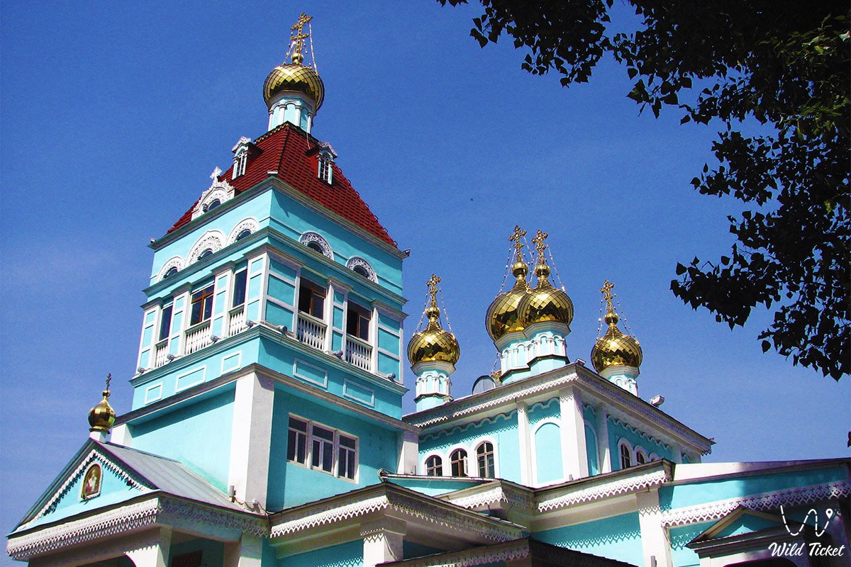 История собора начинается в далёком XIX веке. Построенный в 1908 году на средства прихожан и купцов города Верного (старое название Алматы), собор был освящён в честь святителя Николая Чудотворца, покровителя путников, мореходов и всех нуждающихся в защите. С тех пор Никольский собор стал духовной опорой для многих поколений горожан. Архитектура храма поражает гармонией и величием. Выполненный в традициях русского церковного зодчества, он сочетает изящество линий и строгую монументальность. Светлые фасады, высокие арочные окна, резные детали и золотые купола создают ощущение торжественности и умиротворения. Внутри собор удивляет своей теплотой: росписи на стенах, иконы, наполненные светом, запах ладана – всё это создаёт особую атмосферу покоя и благоговения. Рядом с собором в непосредственной близости расположены парк-сквер Ахмета Байтурсынова, памятник Ахмета Байтурсынова и дом-музей Ахмета Байтурсынова.