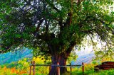 Вскоре мы достигаем место произрастания яблони Сиверса-долгожителя. Яблоня расположена на высоте 1458 метров над уровнем моря. Отсюда можно наблюдать красивую панораму реки Лепсы, заросли яблоневых деревьев, живописные виды на горы.