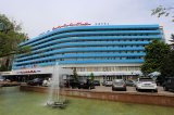 Гостиница «Алматы» – одна из самых известных и символичных в городе, ставшая настоящей архитектурной и культурной визитной карточкой столицы южного Казахстана. Она была построена в советское время в 1967 году и задумывалась как главная городская гостиница, отражающая престиж и динамику развивающегося Алматы. Здание имеет восемь этажей в высоту и имеет изогнутую форму что придает всему зданию городскую эстетичность, уникальность и плавность конструкции. Здание расположено в центре города, рядом с важнейшими проспектами и культурными объектами, что делает его удобным как для туристов, так и для деловых гостей. Например, рядом с гостиницей на другой стороне улицы находиться знаменитый фонтан «Неделька» тоже времен советской постройки и Казахский Государственный Театр оперы и балета имени Абая Кунанбаева, перед которым так же есть фонтан. Вся территории здесь засажена деревьями что делает этот район удобным, уютным для неспешных прогулок, отдыха и приятного время провождения.