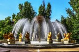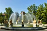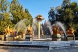 Фонтан «Восточный Календарь» в городе Алматы – один из самых ярких и необычных архитектурно-художественных ансамблей города, символизирующий богатство культурных традиций и связь человека с вечным ходом времени. Этот фонтан местные жители называют фонтан «Знаки Зодиака». Он расположен в живописной части города, рядом с памятником А. С Пушкину и рядом с Академий Наук Казахстана. Фонтан был создан в 1980-е годы и с самого начала задумывался не просто как декоративное украшение, а как глубокий символ. Его основу составляет круглая чаша, украшенная бронзовыми скульптурами, каждая из которых олицетворяет одно из животных восточного календаря. Крыса, бык, тигр, заяц, дракон, змея, лошадь, овца, обезьяна, петух, собака и кабан – все они выполнены с особой художественной выразительностью, подчёркивая древнюю философию цикличности времени и гармонии человека с природой. Если вый пойдете вниз по улице Пушкина, то через несколько кварталов после неспешной прогулки вы дойдете до парка 28 Панфиловцев, где находиться Мемориал Славы и Кафедральный собор.