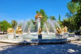 Фонтан «Восточный Календарь» (Знаки Зодиака) в Алматы – это одна из самых узнаваемых и любимых достопримечательностей города. Он был создан в 1979 году по проекту архитектора В. Н. Кима и скульпторов В. А. Сидоренко, В. Ф. Твердохлебова и Н. П. Журавлёва. Изначально фонтан назывался «Орбита» из-за своей круговой композиции, напоминающей орбиты планет, но позднее получил своё современное название благодаря скульптурам животных восточного зодиакального цикла. Он представляет собой большой круглый бассейн с центральной чашей, от которой по кругу расположены двенадцать постаментов. На каждом из них установлена бронзовая скульптура животного, по середине водной чаши установлен постамент, на котором возвышается скульптура Солнца с 216 лучами. От каждого животного в сторону Солнца бьет фонтан воды.