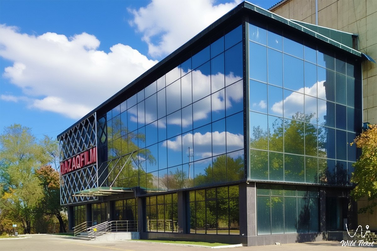 Комплекс «Казахфильма» – это целый город кино, где каждый уголок дышит историей. Территория студии занимает десятки гектаров и включает павильоны для съёмок, декорационные цеха, монтажные комнаты, хранилища реквизита и звуковые студии. Главный вход украшен лаконичным фасадом в стиле позднего советского модернизма, с широкими лестницами и витражами, отражающими горный пейзаж. Просторные внутренние дворы часто используются как съёмочные площадки, где можно воссоздать целые города, степные просторы или сцены из далёких эпох.