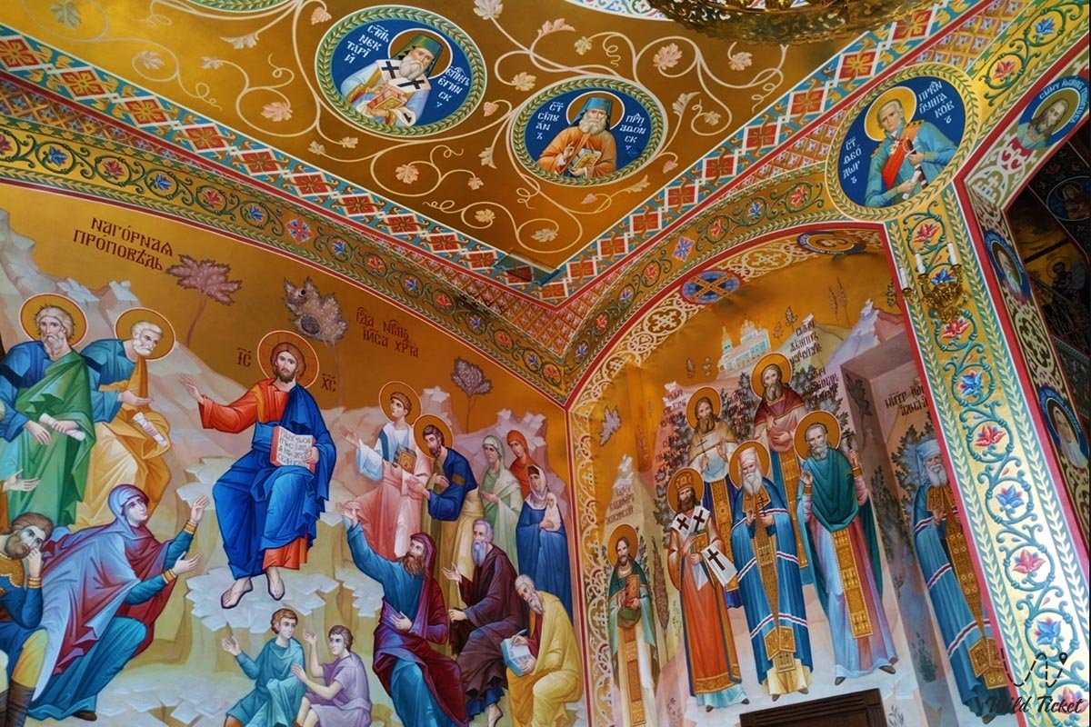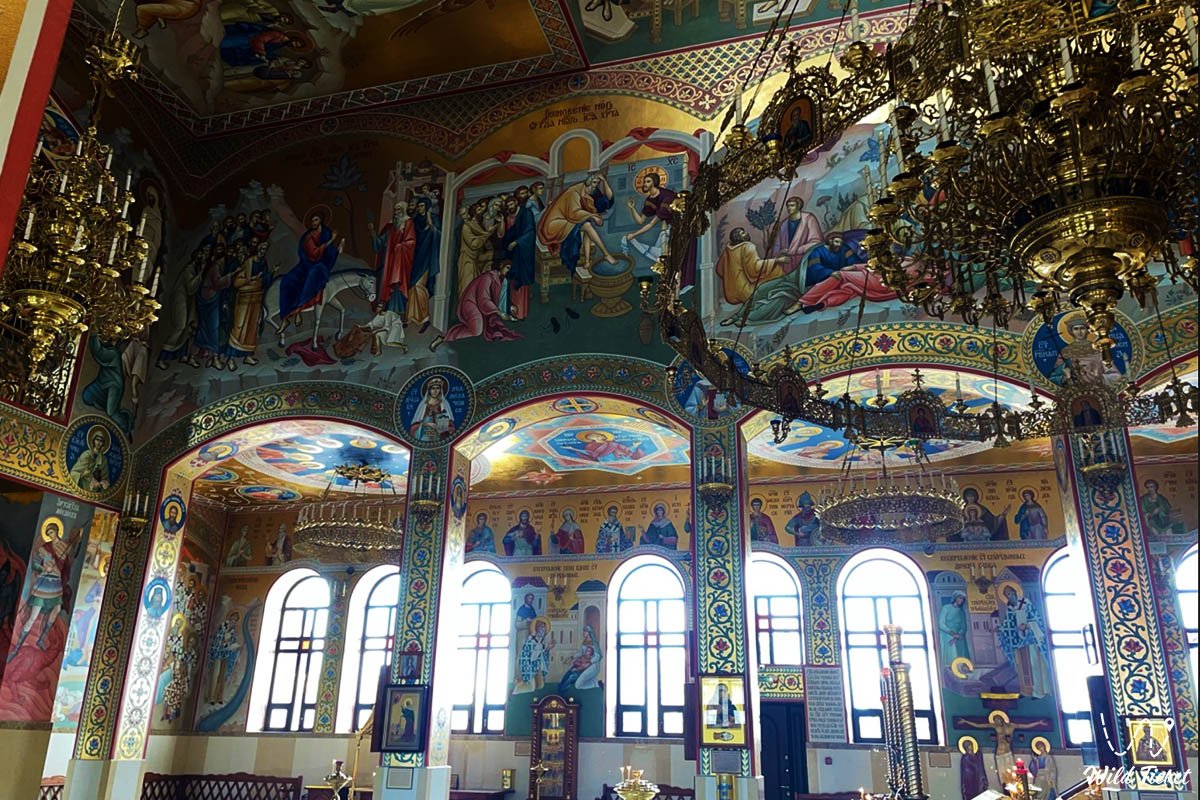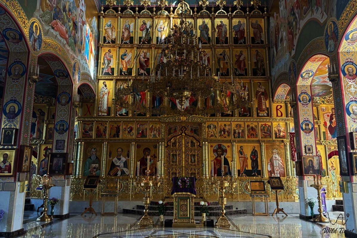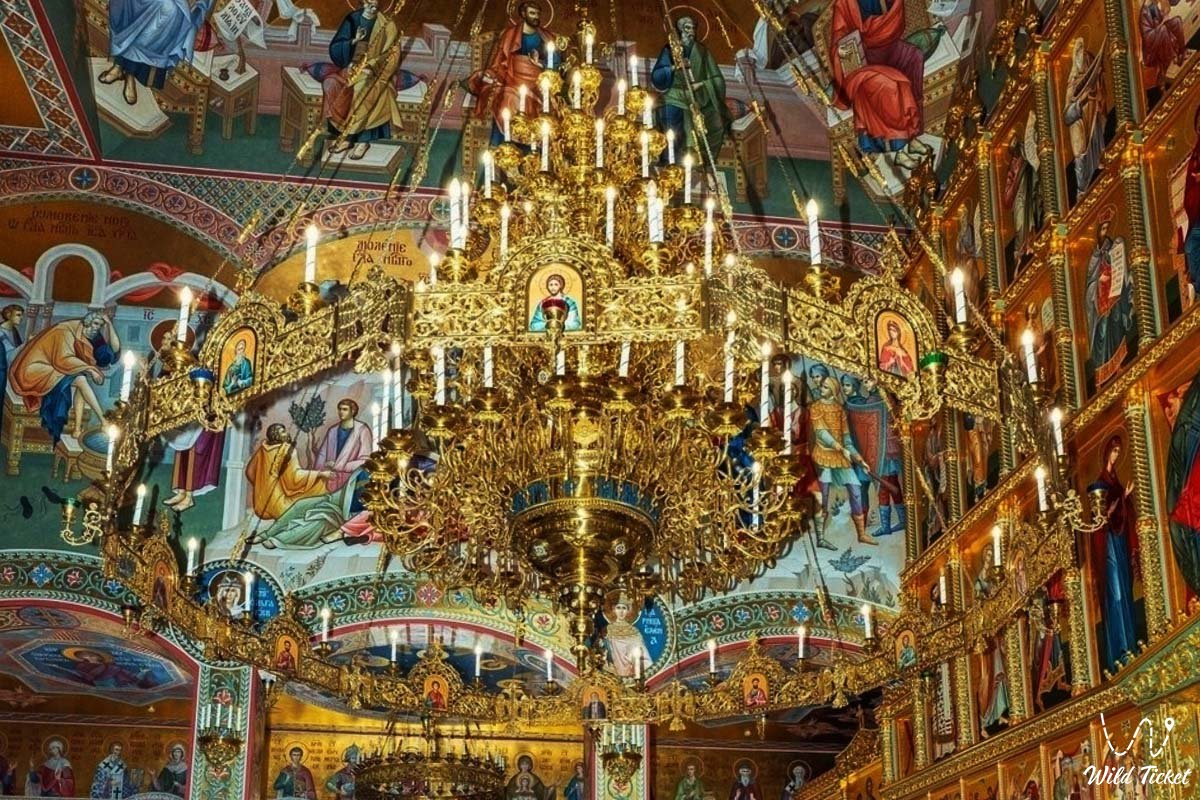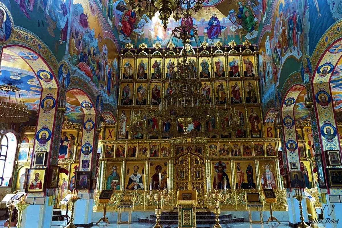 Внутри – светлый и торжественный интерьер, наполненный ароматом ладана и звуками хора.