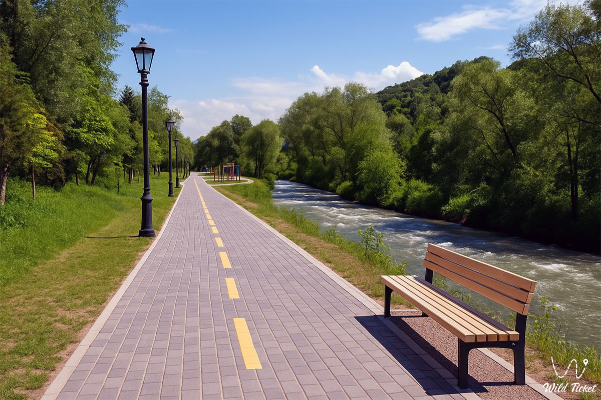 Маршрут подходит для самых разных форм отдыха. По утрам здесь бегают, днём гуляют с детьми и колясками, катаются на велосипедах, вечером приходят пары и компании друзей. Вдоль тропы установлены скамейки, чтобы можно было сделать паузу, посидеть у воды и просто посмотреть, как стремительно движется гороная река. Спортивные и детские площадки оживляют маршрут, но не ломают его природный характер – всё сделано так, будто город лишь аккуратно прикоснулся к этому месту.