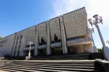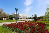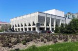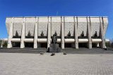 Театр им. Ауэзова с полным названием Казахского государственного академического театра драмы имени М.О. Ауэзов расположен на улице Курмангазы в Алматы, Казахстан, недалеко от реки Есентай. Он имеет большой 1000-местный зал и экспериментальный театр на 250 мест. Экстерьер и интерьер здания спроектированы с правильными линиями, на которых поверхности оформлены в традиционном стиле. Серия одинаковых колонн подчеркивает главный фасад и делает его торжественным и грандиозным в отличие от других зданий вокруг него. Памятник Мухтару Ауэзову, установленный в 1980 году и расположенный перед театром, показывает фигуру, Ауэзова, сидящего в кресле, словно погруженного в свои мысли, который был писателем прозы и наиболее известен по книге «Путь Абая». Театр расположен рядом с городским Цирком и Дворцом бракосочетания, образующих живописное место в городе. Спектакли театра выполнены в классических и современных стилях на казахском языке, в которых предусмотрен перевод на русский язык. Театр работает круглый год, спектакли начинаются около 18:30. Станция метро, также расположена напротив театра, что позволяет добраться до места с помощью метро.
