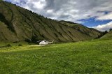 Закончив завтрак, верхом мы отправляемся к верховьям реки Карасай. Покинув место стоянки, мы едем по левой стороне реки Чилик, на правый берег мы попадем по старому подвесному мосту, чуть далее которого, находятся остатки древнего кладбища. Затем, нам путь лежит через еловый лес, пройдя который, мы попадаем к реке Карасай. Двигаясь по ее правому побережью, мы потихоньку поднимаемся к ее верховьям. Через тринадцать километров дойдя до верховий, ставим лагерь на высоте 2202 метра над уровнем моря, ужинаем и отдыхаем.