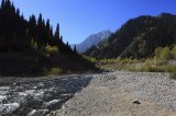 От города Иссык вверх по ущелью ведет асфальтированная дорога до озера Иссык. В ущелье красивая природа, из предгорий и холмистой местности вы постепенно поднимаетесь в горы, здесь начинают расти ели которые являются визитной карточкой всего Заилийского Алатау. Так же по ущелью протекает живописная горная речка, которая тоже называется река Иссык. Вверх по ущелью Иссык есть горные маршруты, и тропы, но передвигаться по ним мы реккомендуем в присутсвии горно гида, проводника и со всем необходимым оборудованием для нахождения в горах в полевых условиях.