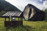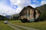 Камень Уй-Тас находится на берегу реки Бухтарма в Катон-Карагайском районе, Катон-Карагайский национального парк, Восточно-Казахстанская область, Республика Казахстан.