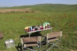 Из поселка Жабаглы мы выезжаем в поселок Машат, по пути которому минуем несколько поселком, в том числе поселок Турар Рыскулов, бывший Ванновка, и поселок Кершетас. Проехав 65 километров, мы добираемся до каньона, и прогуливаемся по территории. В каньоне Машат мы сможем увидеть разные виды тюльпанов, такие как тюльпан Кауфмана и тюльпан Грейга, а также и другие растения, например, катран Кочи, миндаль колючий и лук каратавский. Закончил прогуливаться по каньона, мы выезжаем на одноименное плато Машат, расположенное в трех километрах отсюда. Обедаем на плато и прогуливаемся. В этом месте мы с вами сможем увидеть такие растения как, тюльпан Лемерса, ложнодвухцветковый тюльпан и тюльпан Грейга. С края каньона перед нам открывается живописный вид на сам каньон и горы Таласского Алатау. Закончив экскурсию, мы возвращаемся в поселок Жабаглы. Обратный путь составит 68 километров.