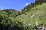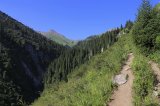Закончив нашу прогулку по плотине Медео, мы выезжаем к урочищу Горельник. Проехав два километра, мы добираемся до места, где начнется наша прогулка пешком, протяженностью три километра, к водопаду под названием «Верхний Горельник». Наша тропа начнется с крутого подъема на склон среди скопления тянь-шанских елей. Пройдя один километр, тропа становится более пологой и на пути нам встречается старый дом, находящийся на альпийской лужайке в окружении елей. На южном склоне, за елями спрятался еще один домик. Миновав большую альпийскую лужайку, мы проходим мимо стоянки для туристов, и двигаемся к ручью Кумбельсу, находящемуся на высоте 2205 метров над уровнем моря. Он берет свое начало с вершины с таким же названием.